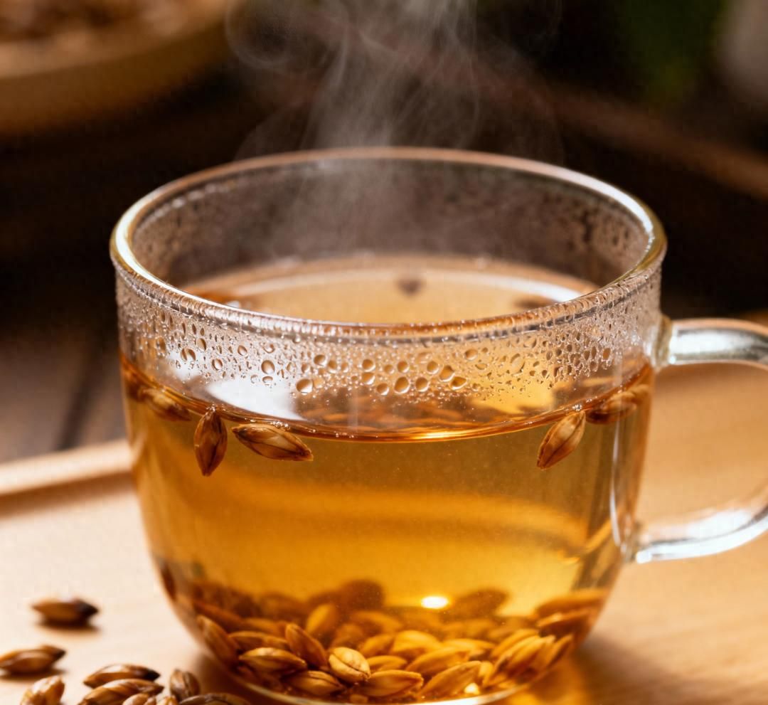 大麦茶:可以在商超购买成品,也可自制。把去皮的大麦仁在小火上慢慢炒,待到米香四溢,颜色焦黄即可。然后取炒过的大麦,用水煮沸或者用沸水冲泡即可。